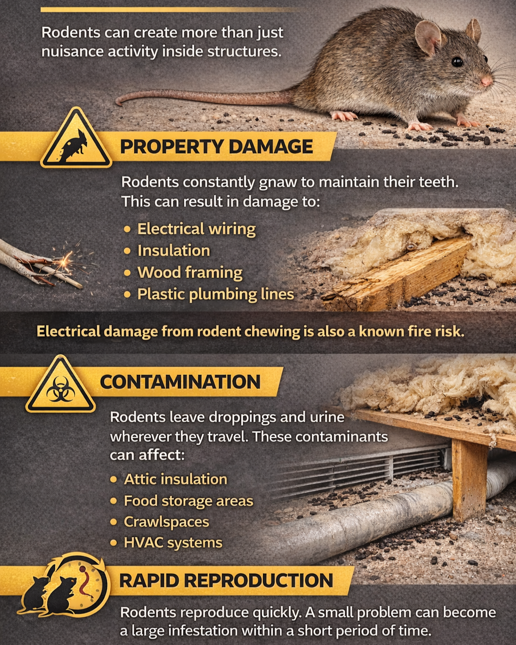 Rodents can create more than just nuisance activity inside structures.
